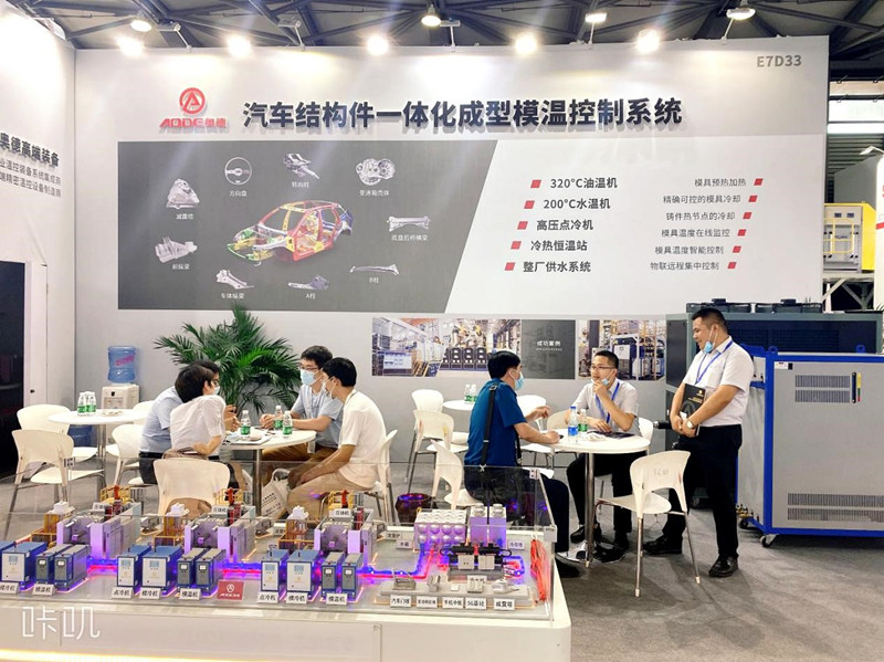 奧德推出“汽車結(jié)構(gòu)件一體化成型溫控系統(tǒng)”,攜320℃超高溫油溫機,200℃超高溫水溫機、壓鑄專用冷熱溫控系統(tǒng)、工業(yè)風冷冷水機亮相本次壓鑄展。